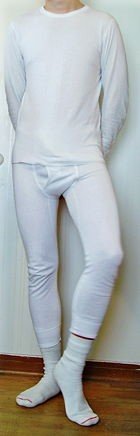 这种“外国秋裤”似乎和我国传统秋裤形制还有轻微的不同。我们常见的秋裤是较为蓬松略厚,而有束口的。那么这种束口秋裤外国有没有呢?也有,就是刚才提到的long underpants。